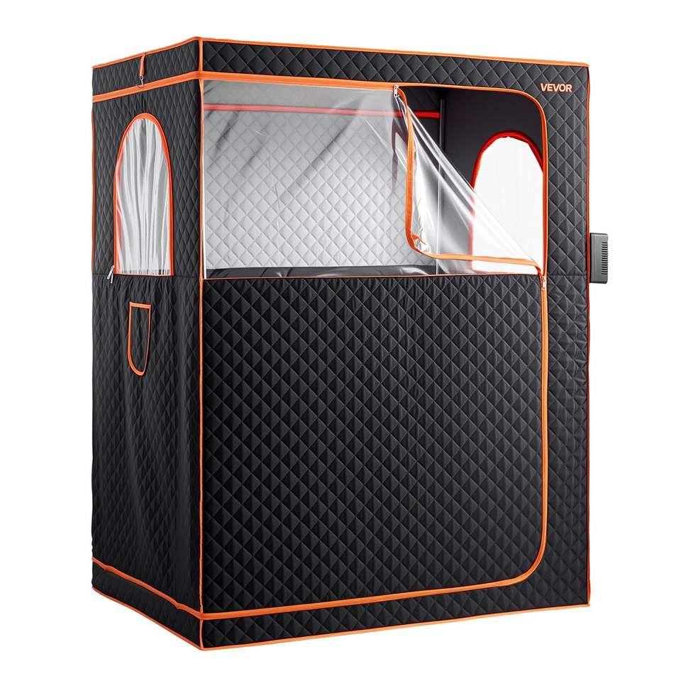 Sauna a Infrarossi Portatile per 2 Persone, Tenda Spa Domestica con 2 Sedie Pieghevoli, Tappetino Riscaldato, Telecomando, Sessione di 9-10 Minuti per Tutto il Corpo