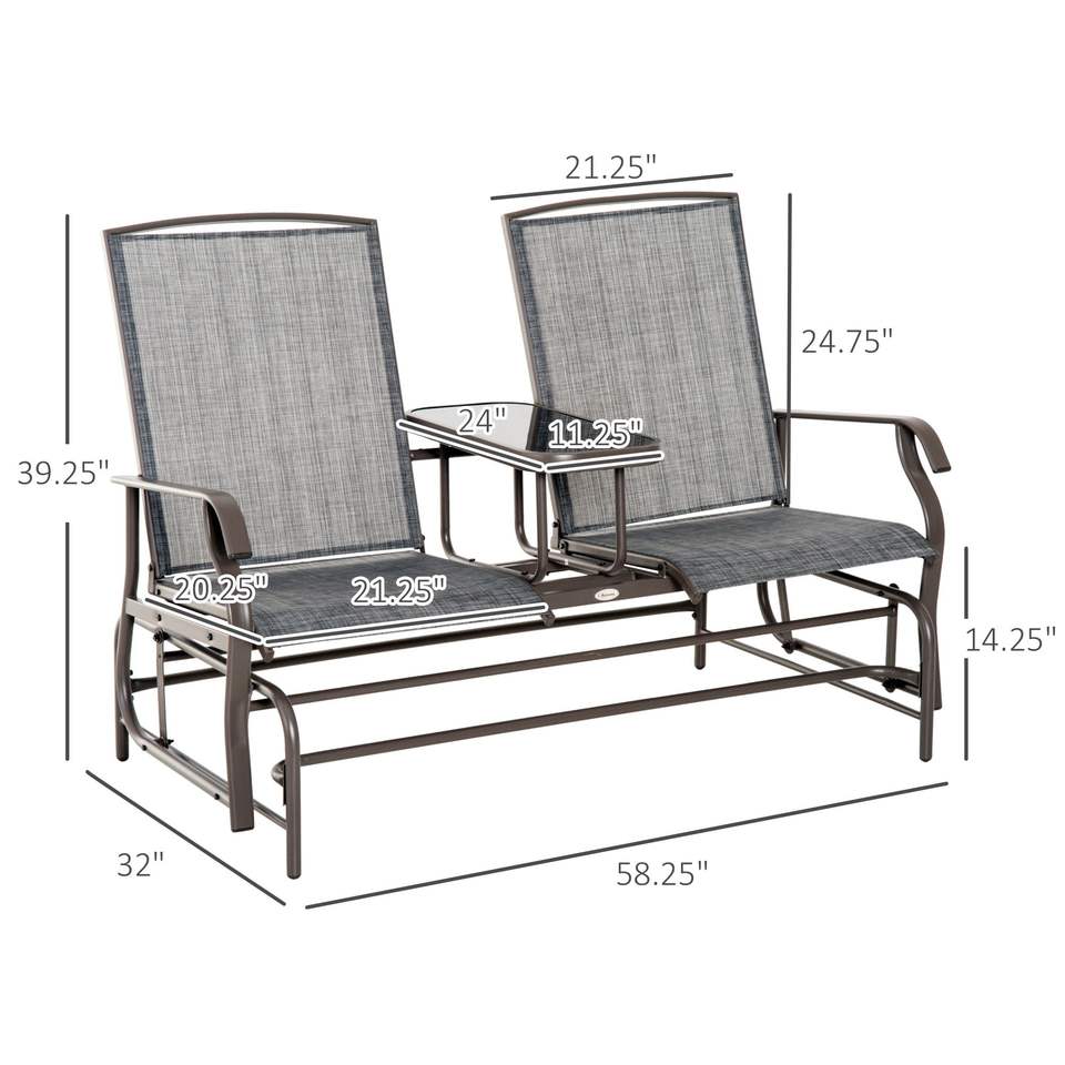 Dondolo a 2 posti da esterno con tavolino centrale, in rete traspirante, per giardino, patio, portico o veranda