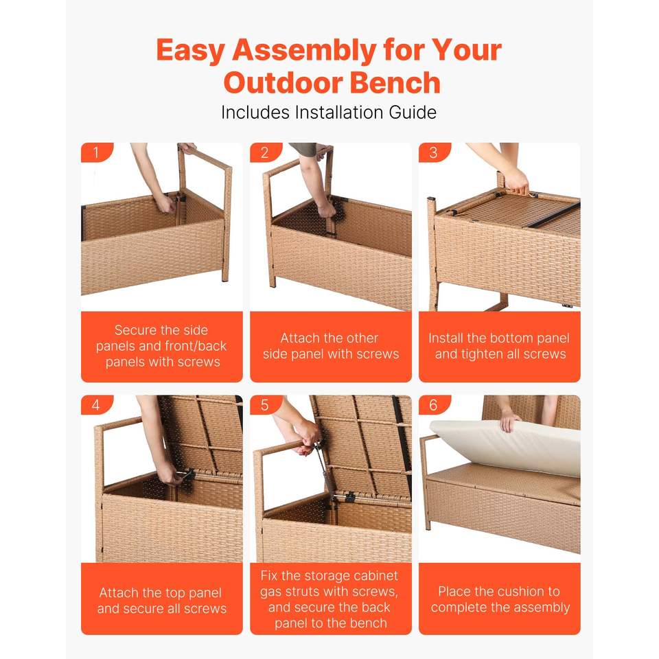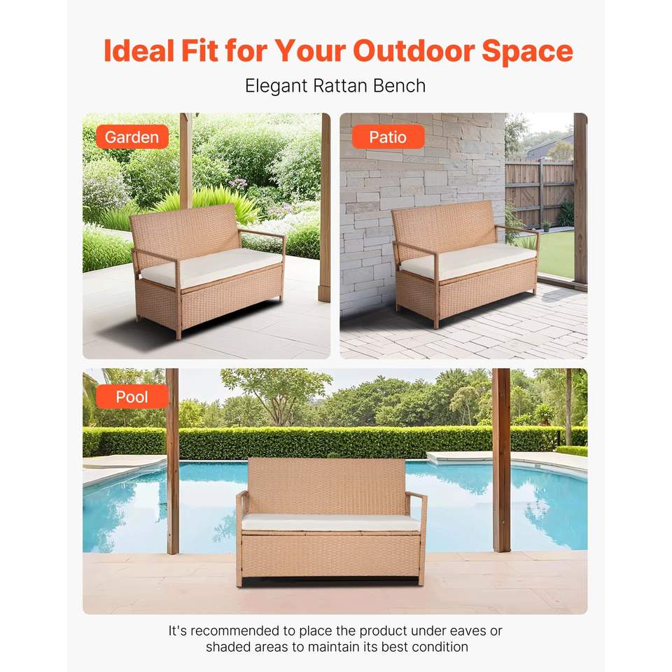 Panca Contenitore da Esterno per 2 Persone, Box da 70 Galloni con Rattan PE e Cuscino, Panca da Patio Resistente alle Intemperie che Supporta 120 kg