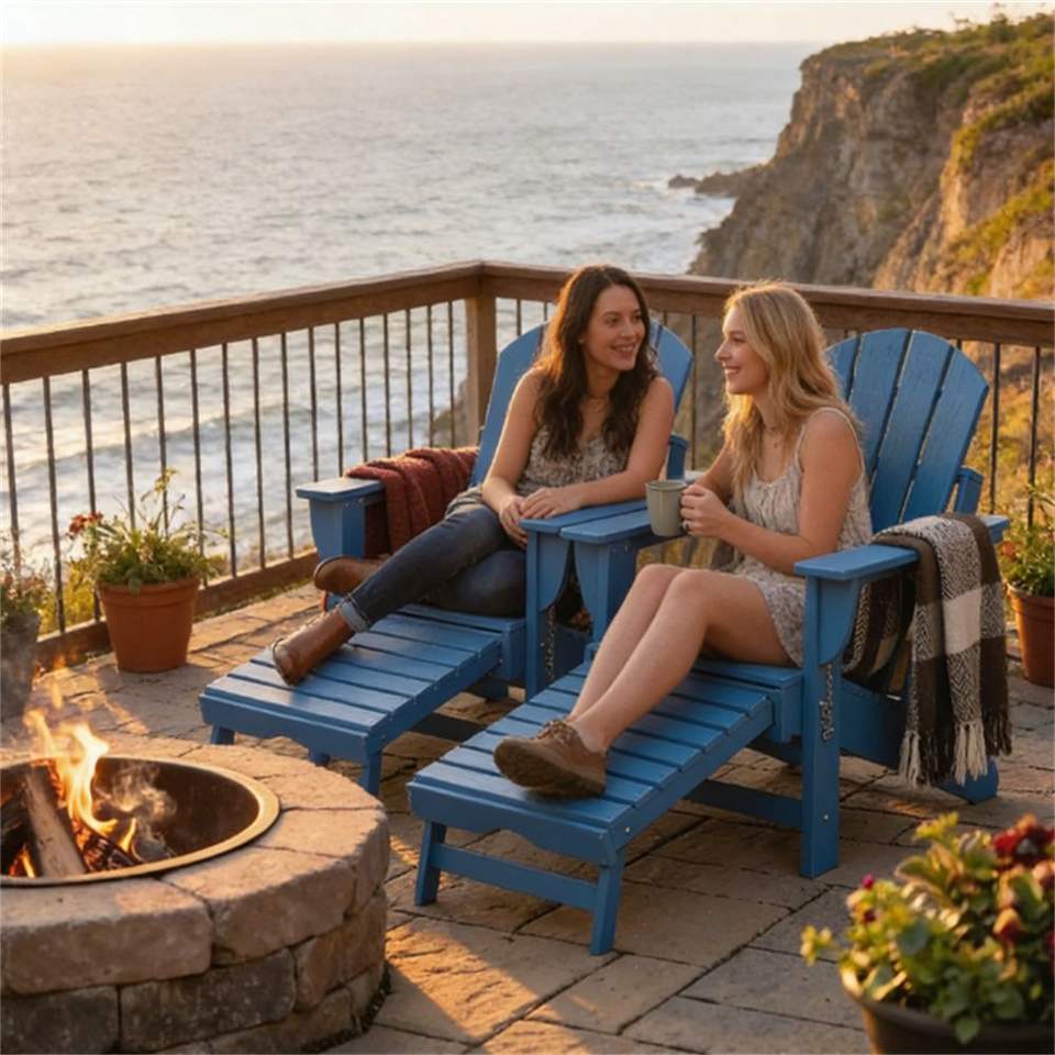 Set di 2 sedie pieghevoli blu per cortile e patio