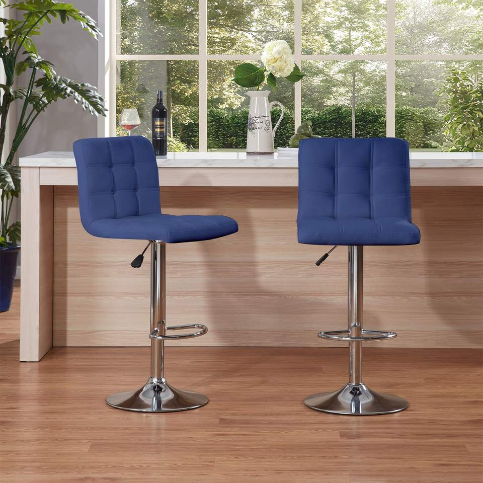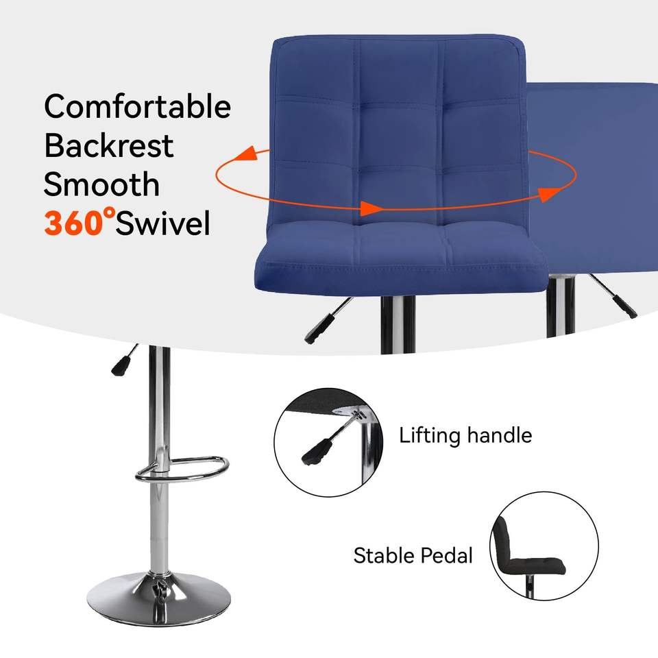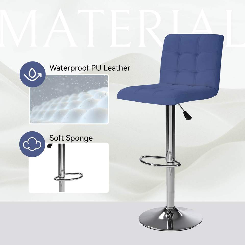 Set di 2 Sgabelli da Bar Blu Cafe, Altezza Bancone, con Cuscino Quadrato e Poggiapiedi, 1 Set di 2 Pezzi