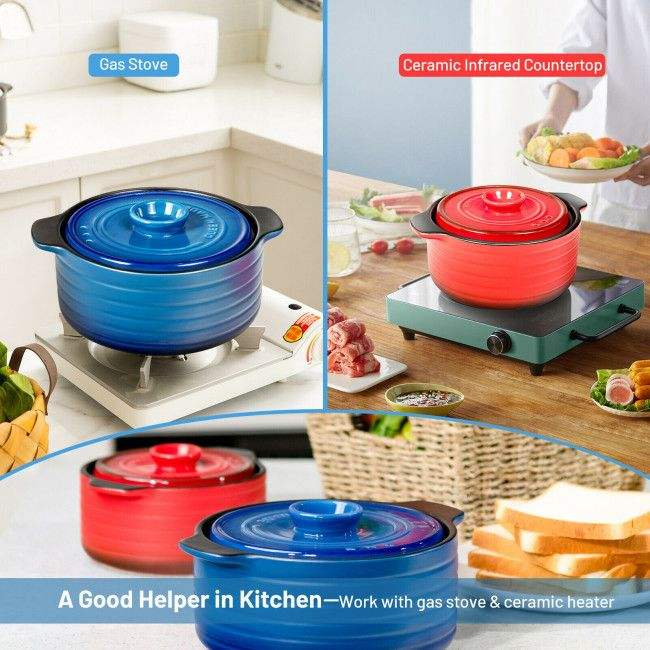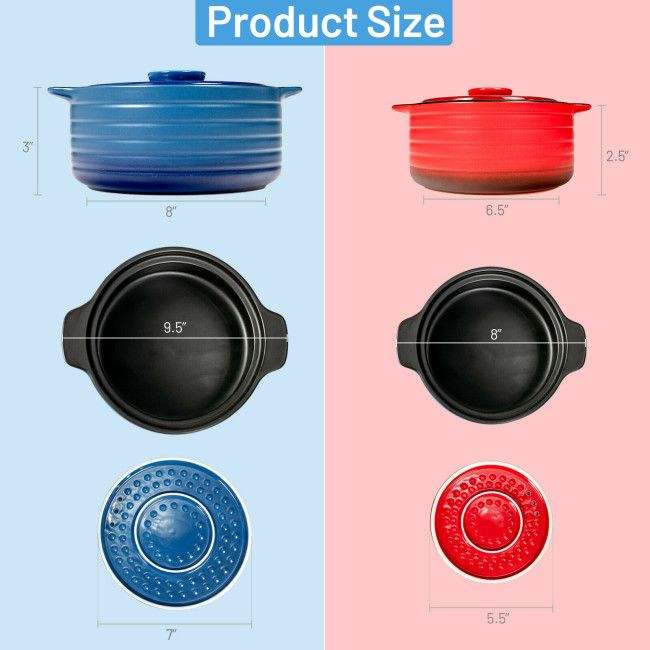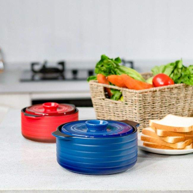 Set di 2 Pentole in Ceramica per Zuppe e Brodi con Coperchio e Manico Isolato