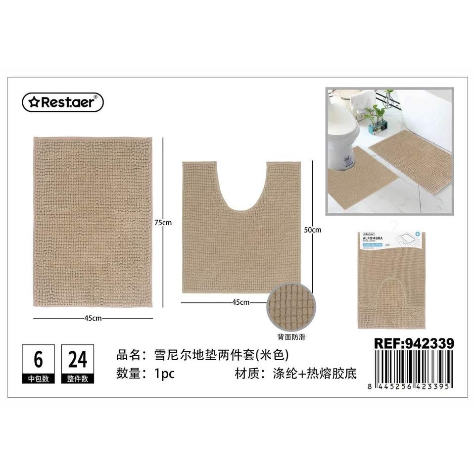 2-Piece Chenille Bathroom Rug Set Memory Foam Bath Mat & Floor Mat Water Absorbent & Anti-Slip Made of Polyester
