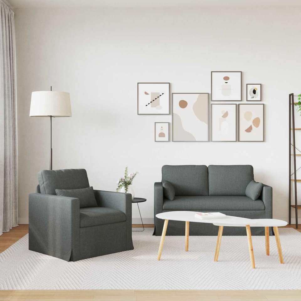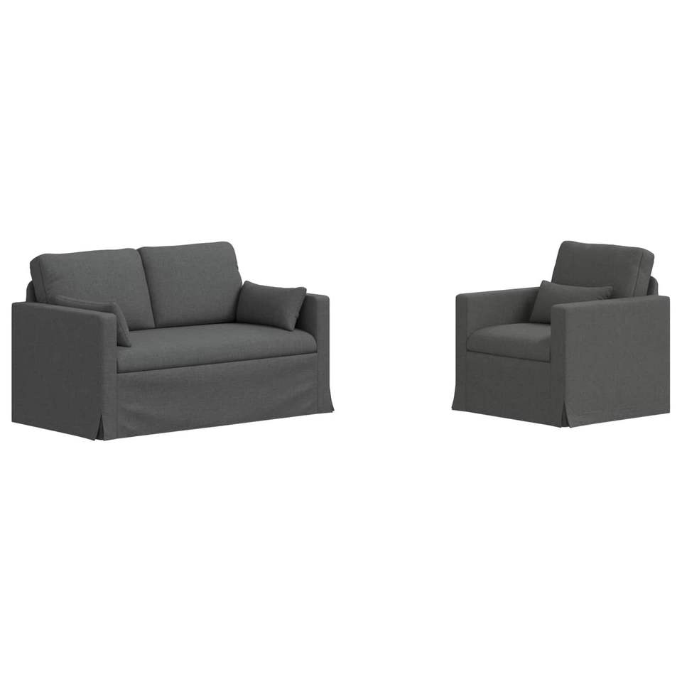 2-Piece Dark Grey Fabric Sofa 139 X 78 X 80 cm for Living Room Sets
