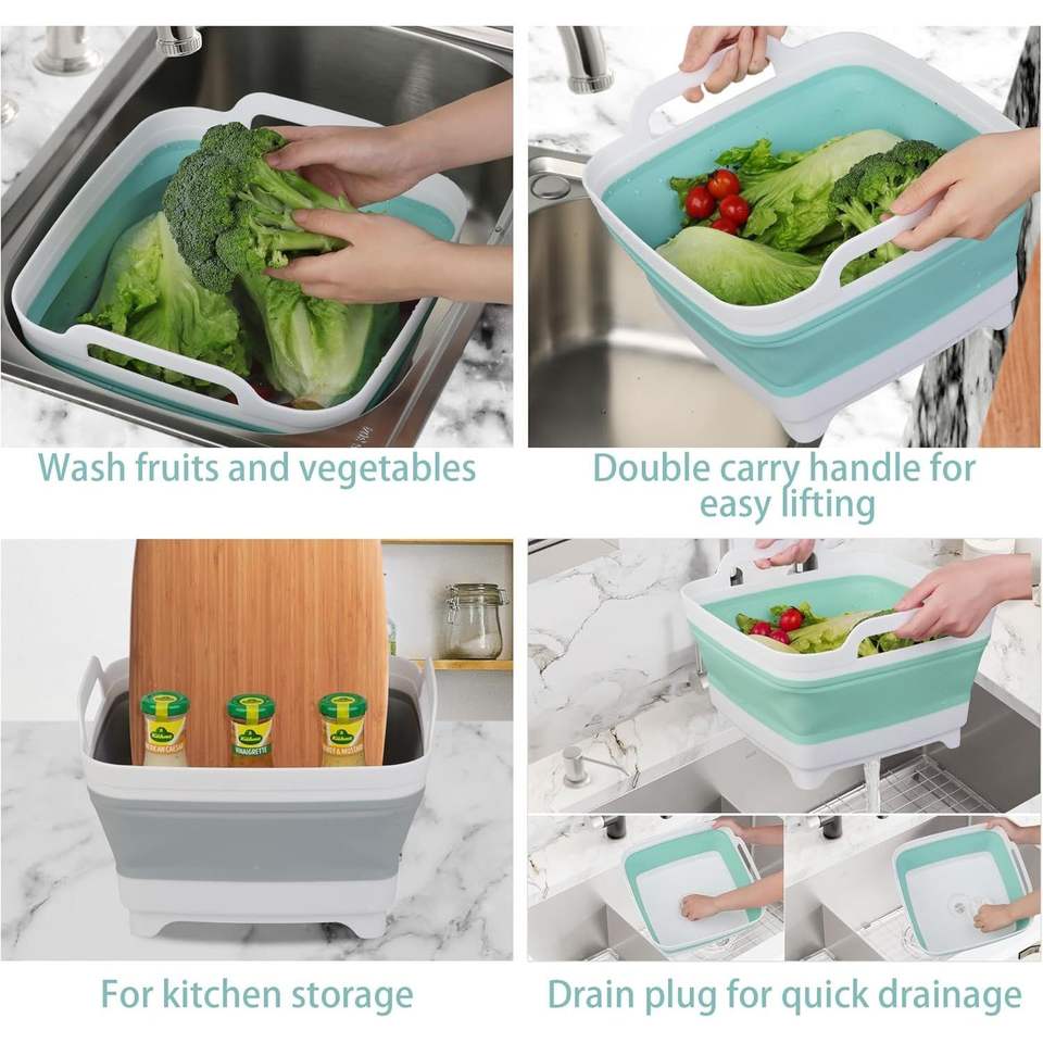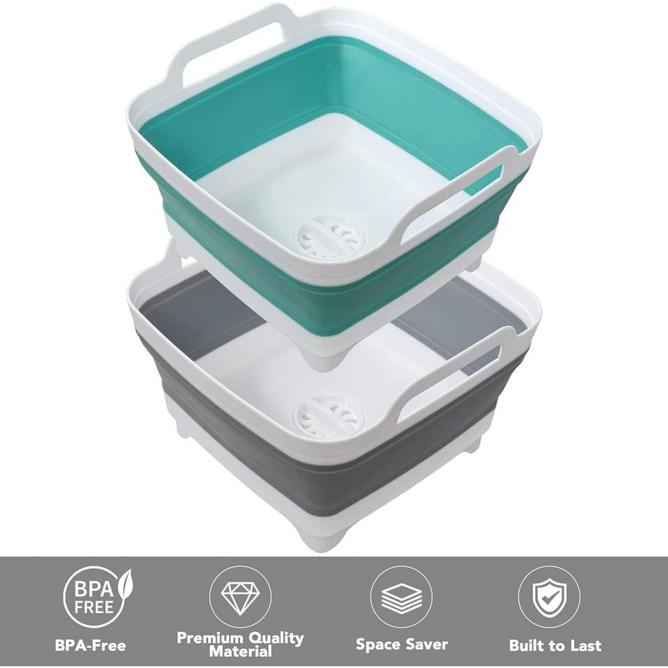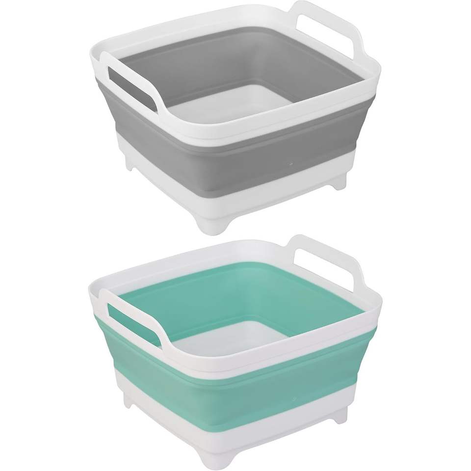 Set di 2 Vasche per Lavaggio Piatti da 9 Litri con Tappo di Scarico e Maniglie per il Trasporto, Accessorio per Lavello da Cucina
