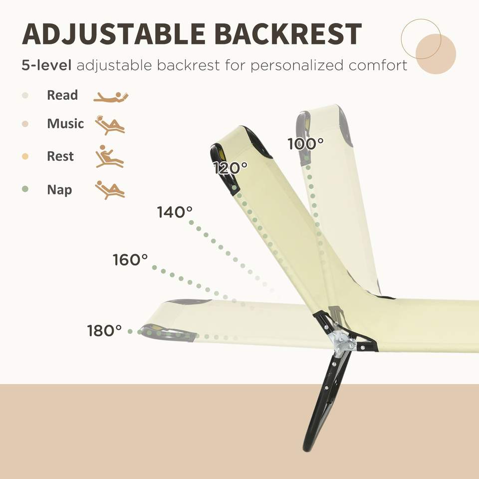 Set di 2 Sdraio Pieghevoli da Piscina con Schienale Reclinabile a 5 Livelli, Lettini Prendisole da Esterno con Telaio in Acciaio per Spiaggia e Giardino