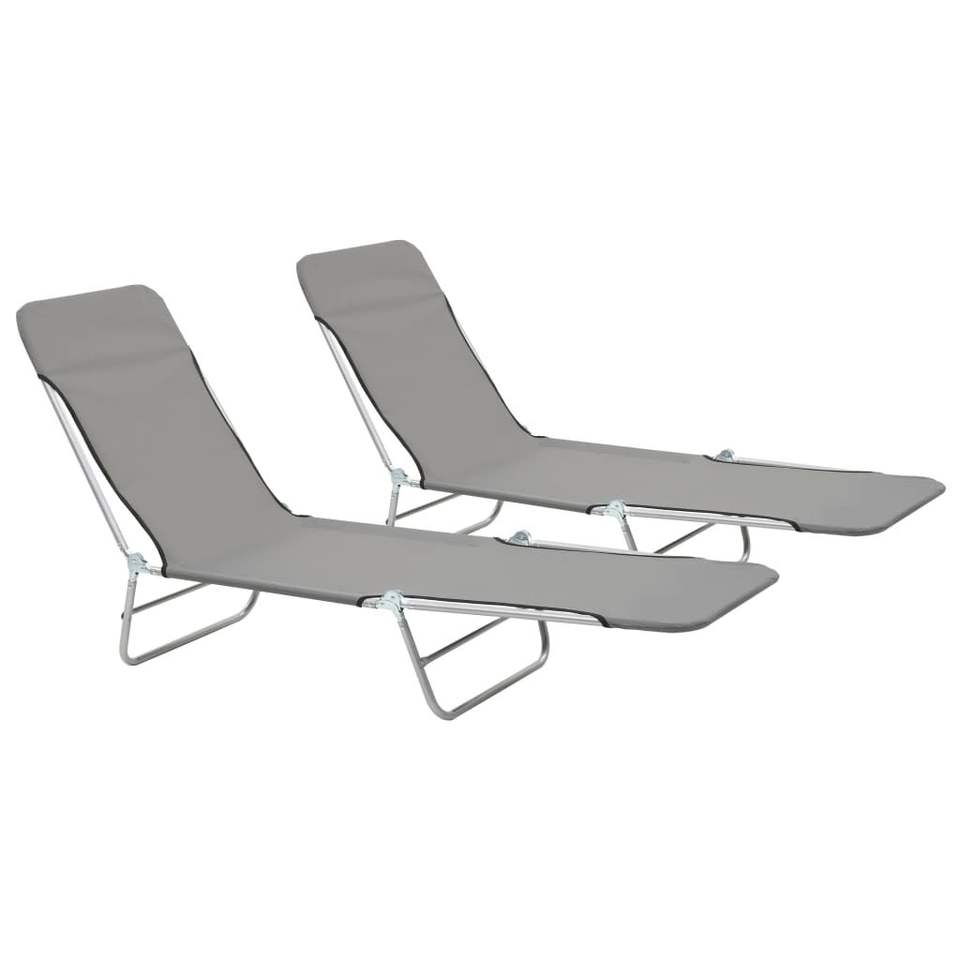 2-Piece Folding Gray Sun Loungers Steel and Fabric Combination