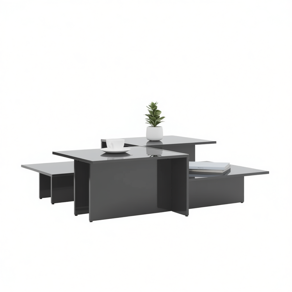 Set di Tavolini da Caffè Moderni in Legno Ingegnerizzato Grigio Lucido per Arredamento Soggiorno
