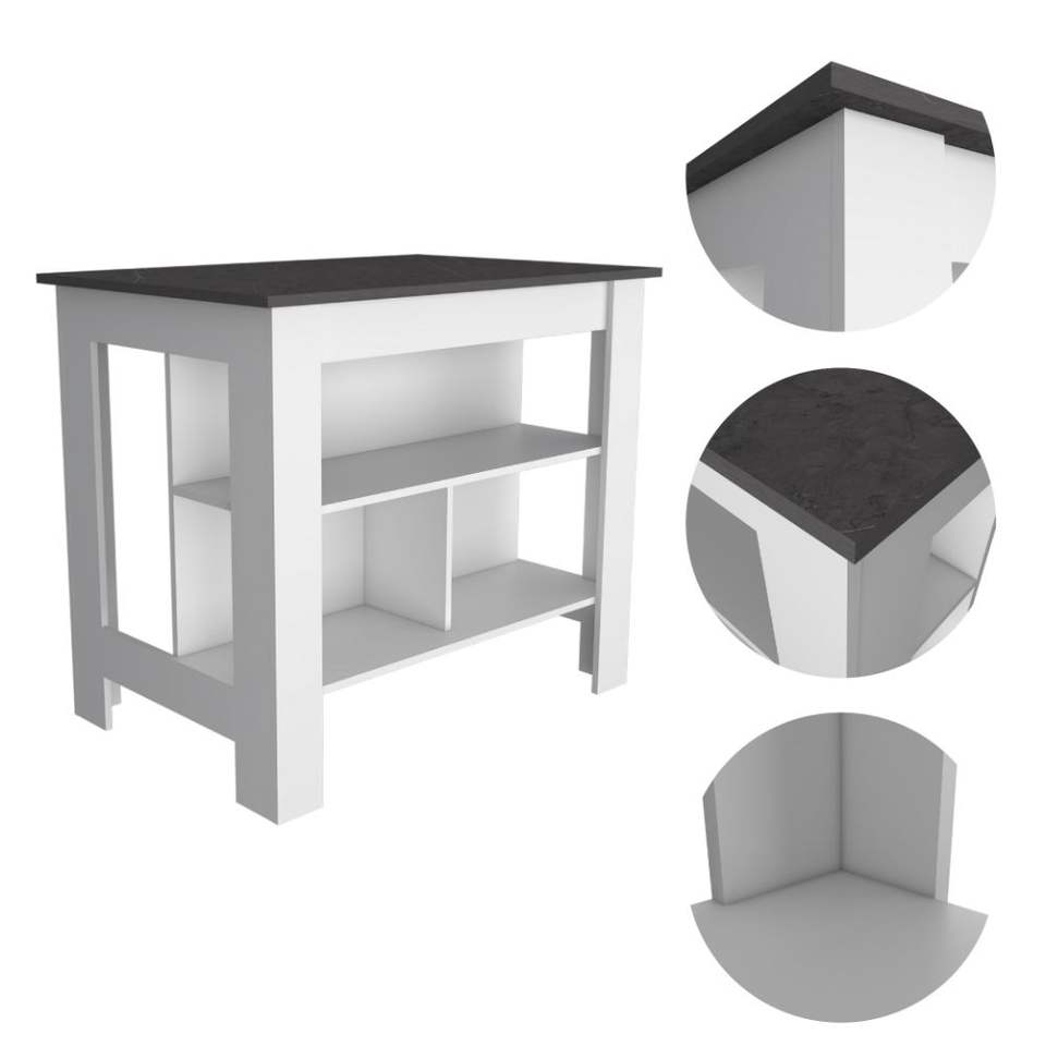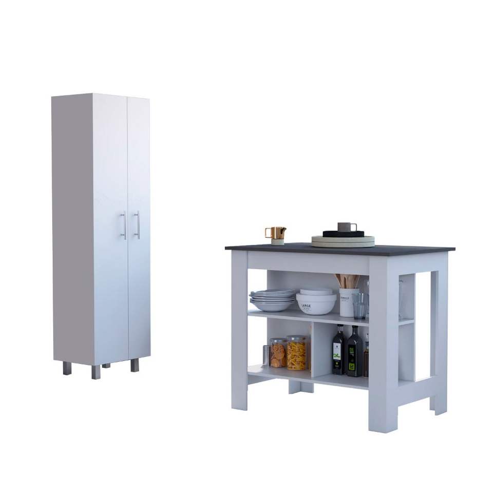 Set da cucina in 2 pezzi in bianco e onice, isola cucina e mobile dispensa
