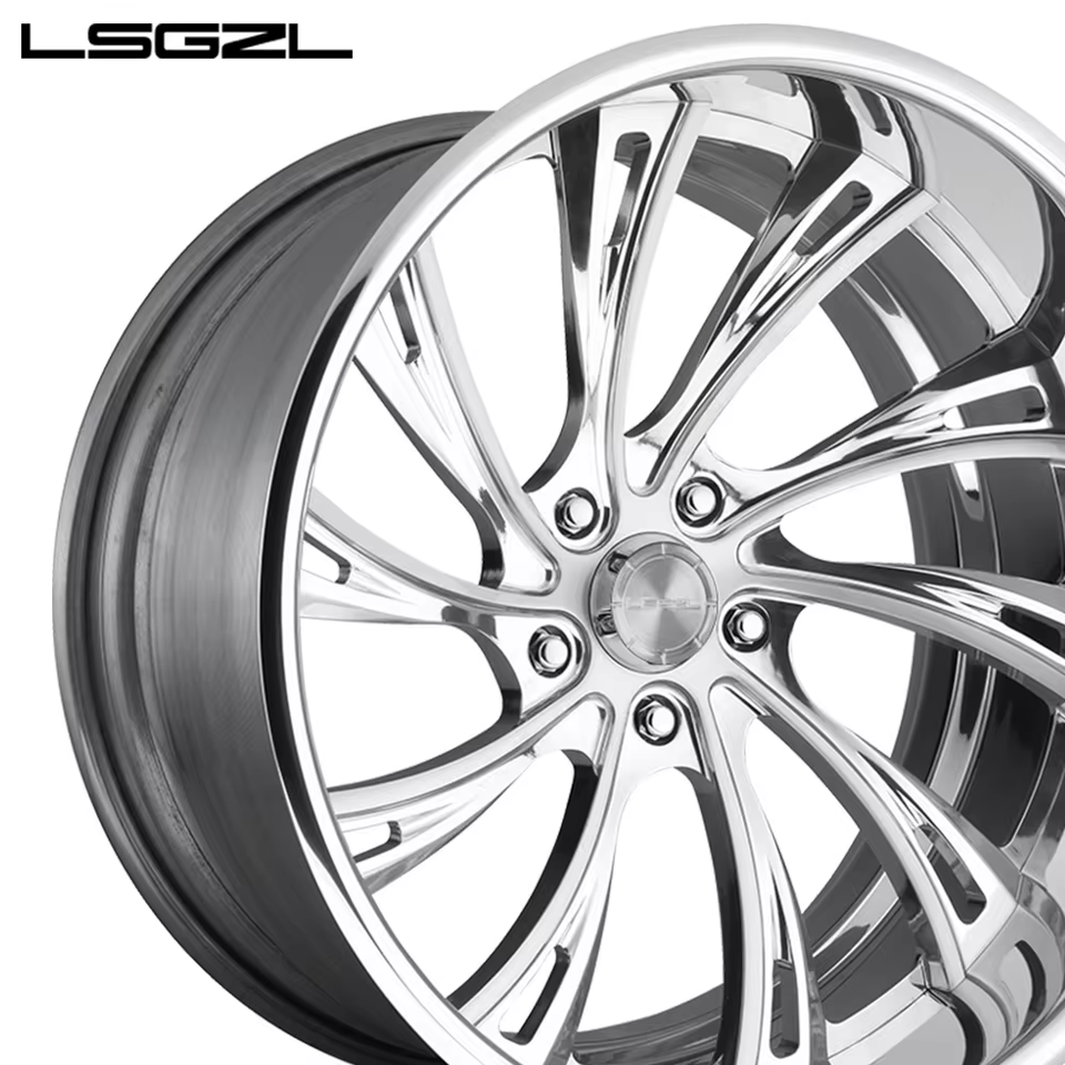 2 Piece Luxury Deep Dish Concave Chrome Forged Alloy Car Wheel 5x114.3 5x120 5x130 15 18 20 22 24 26 Inch Wheel Rim