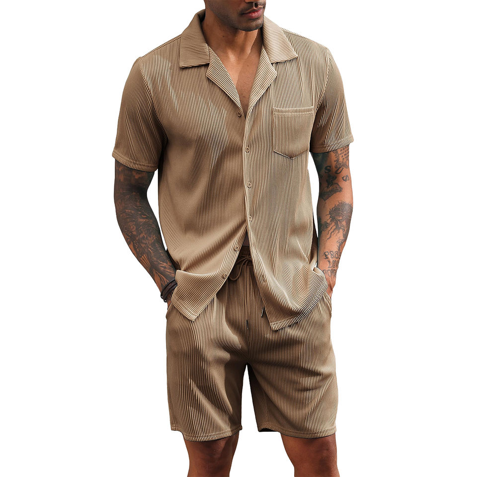 2 Piece Men T Shirt Short Pant Custom Men Two Piece 100% Linen Cotton Clothing Shirt Shorts Casual Linen Suit Set for Men