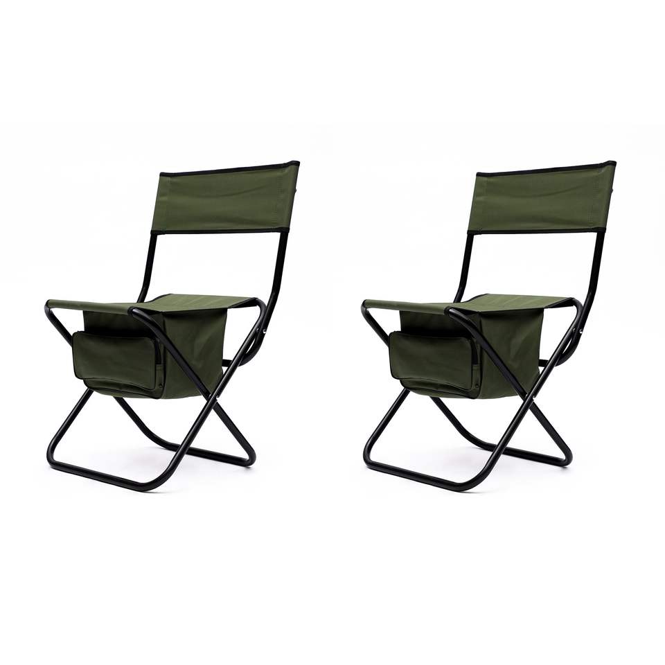 Sedia Pieghevole Portatile a 2 Pezzi con Borsa Portaoggetti Verde per Interni, Esterni, Campeggio, Picnic, Pesca