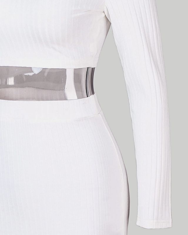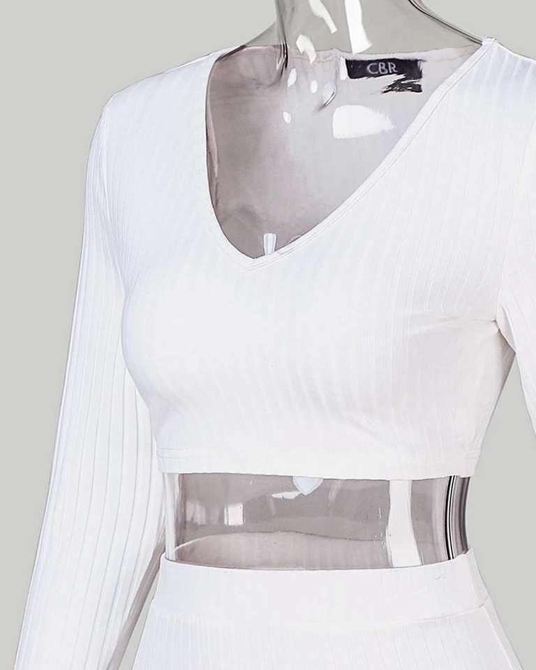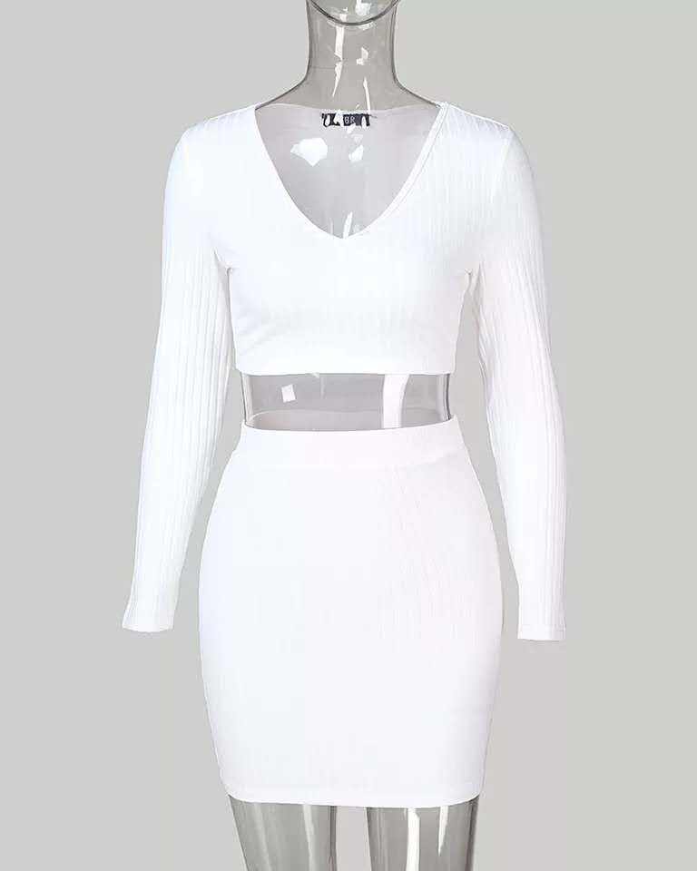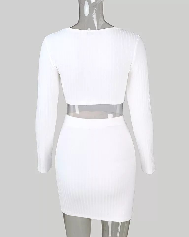 2 Piece Set Women Knitted Suit Long Sleeve Shoulder Two Piece Set Crop Top and Skirt V Neck Female Outfits Ladies Party Dress