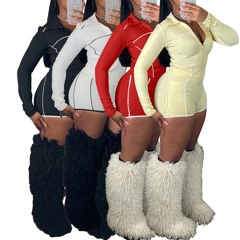 Lamowholesale Completo 2 pezzi: giacca con foro per pollice e shorts bodycon in misto cotone-poliestere, tasche, elasticizzato