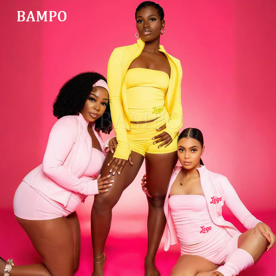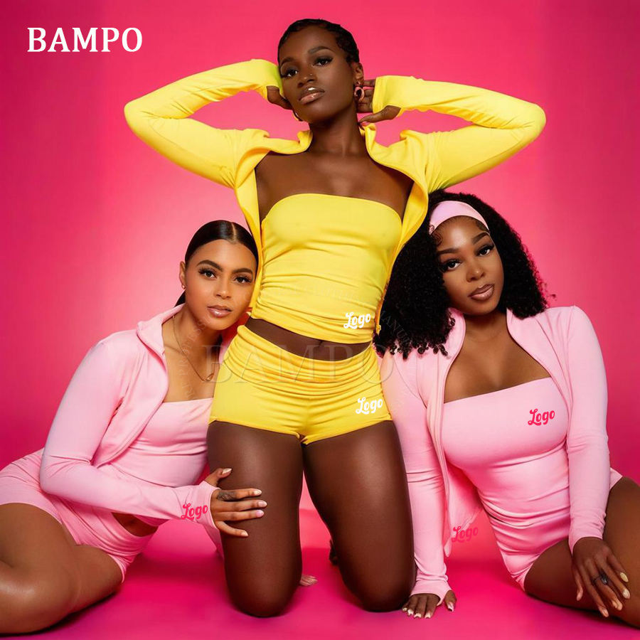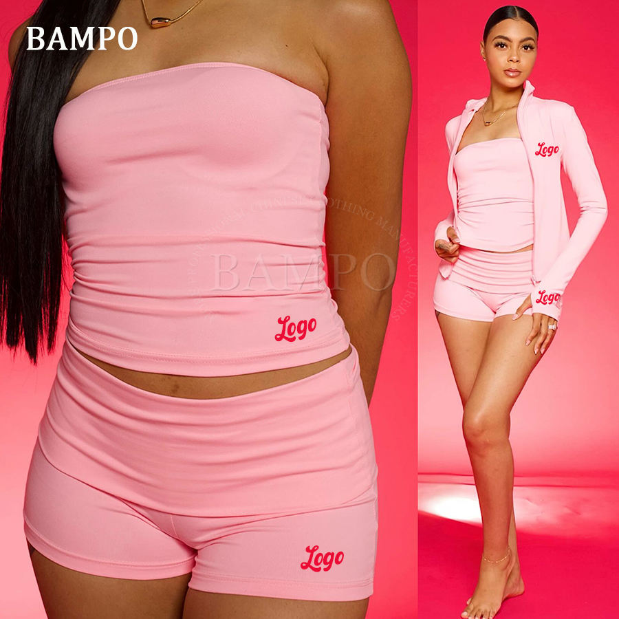 2 Piece Set Women's Summer Clothes Custom Cotton Y2K Tube Top and Fold Over Flare Shorts Two Piece Lounge Set Women Clothing
