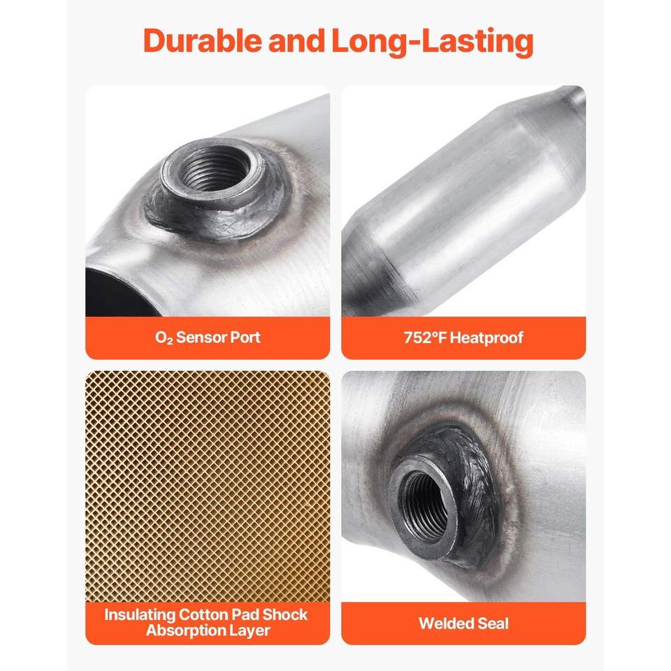2-Piece Universal High-Flow Car Catalytic Converter 2.5 Inch Inlet/Outlet Direct Replacement with O2 Port