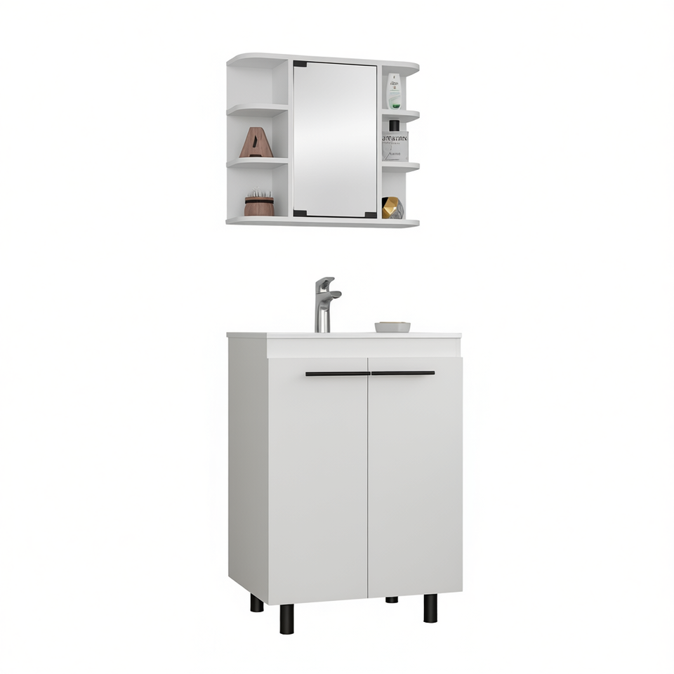 Set da bagno bianco con mobile a specchio e lavabo, design minimalista per l'organizzazione e lo stoccaggio del bagno