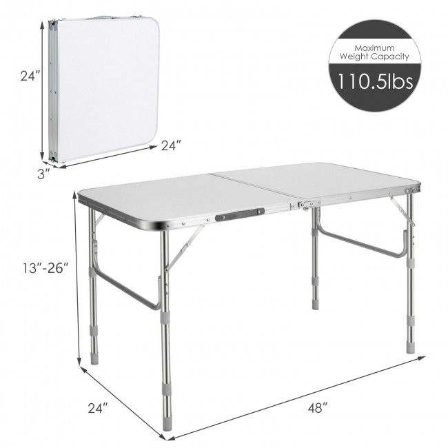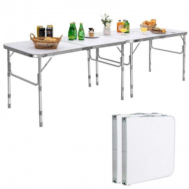 Tavolo pieghevole bianco a 2 pezzi con maniglia per il trasporto