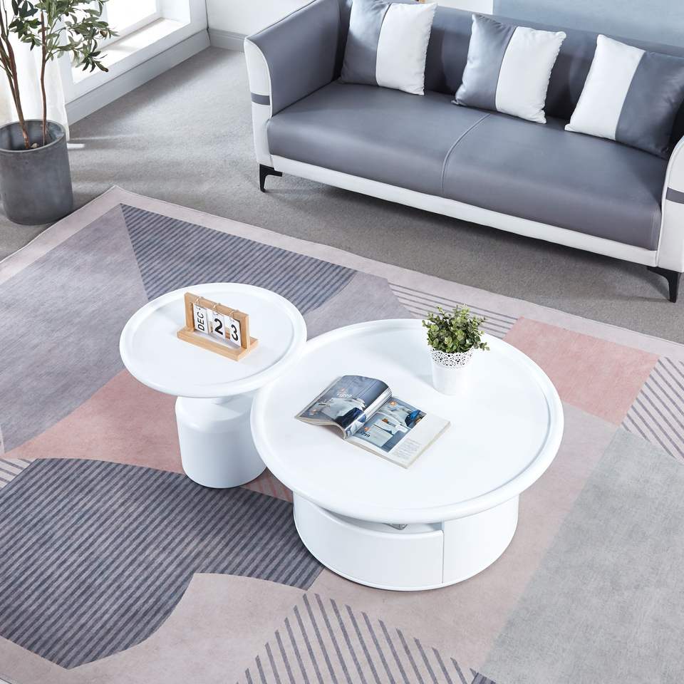 Set di 2 tavolini rotondi bianchi in MDF per soggiorno e camera da letto