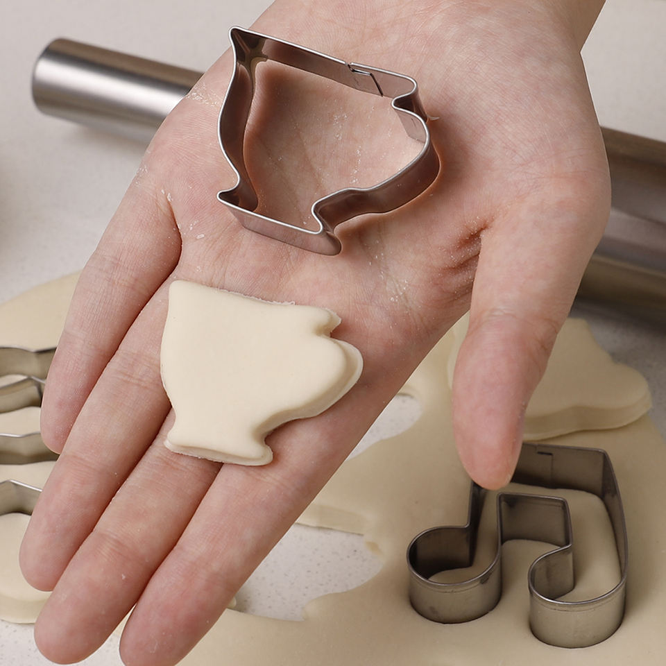 Set di 2 Stampini per Biscotti a Forma di Teiera e Tazza in Acciaio Inox, Stampi per Biscotti, Utensili per Pasticceria e Decorazione Torte per Tea Party