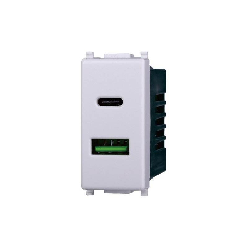 Modulo Presa USB Bianco con 2 Porte 3.1A USB-A + USB Tipo C Compatibile con Vimar Plana Originale