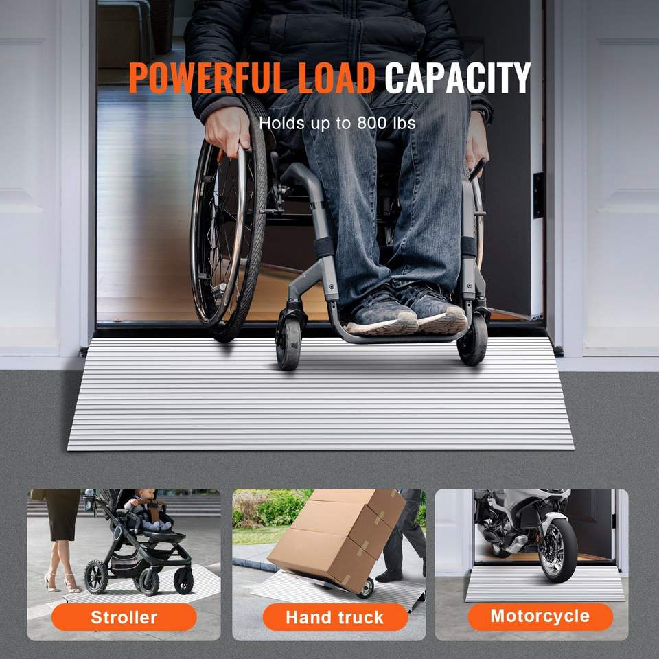 Rampa per Soglia Porta in Alluminio con Altezza 2 Pollici, Capacità di Carico 800 Libbre, Regolabile per Sedie a Rotelle