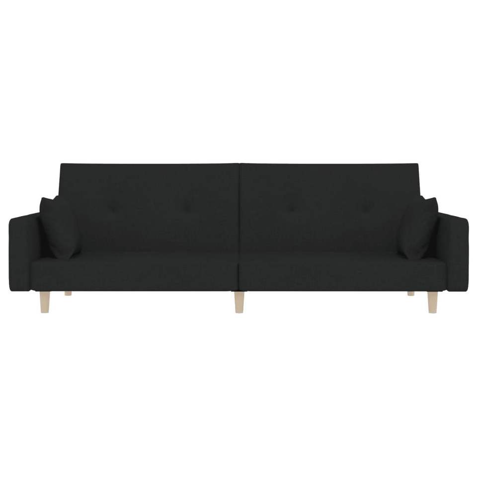 2-Seater Black Fabric Sofa Bed 100% Polyester Wood & Plastic Size for Comfortable Seating
