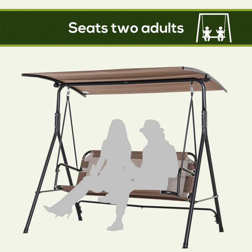 Dondolo da Giardino a 2 Posti Marrone con Tettuccio Regolabile, Braccioli e Telaio in Acciaio, Tessuto Texline per Esterni e Portico