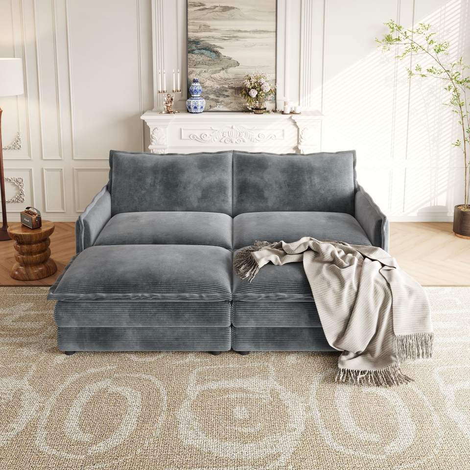 Pista per poggiapiedi mobile in velluto a coste a 2 posti comodo divano a nuvola con sedile profondo oversize reclinabile divano da soggiorno imbottito