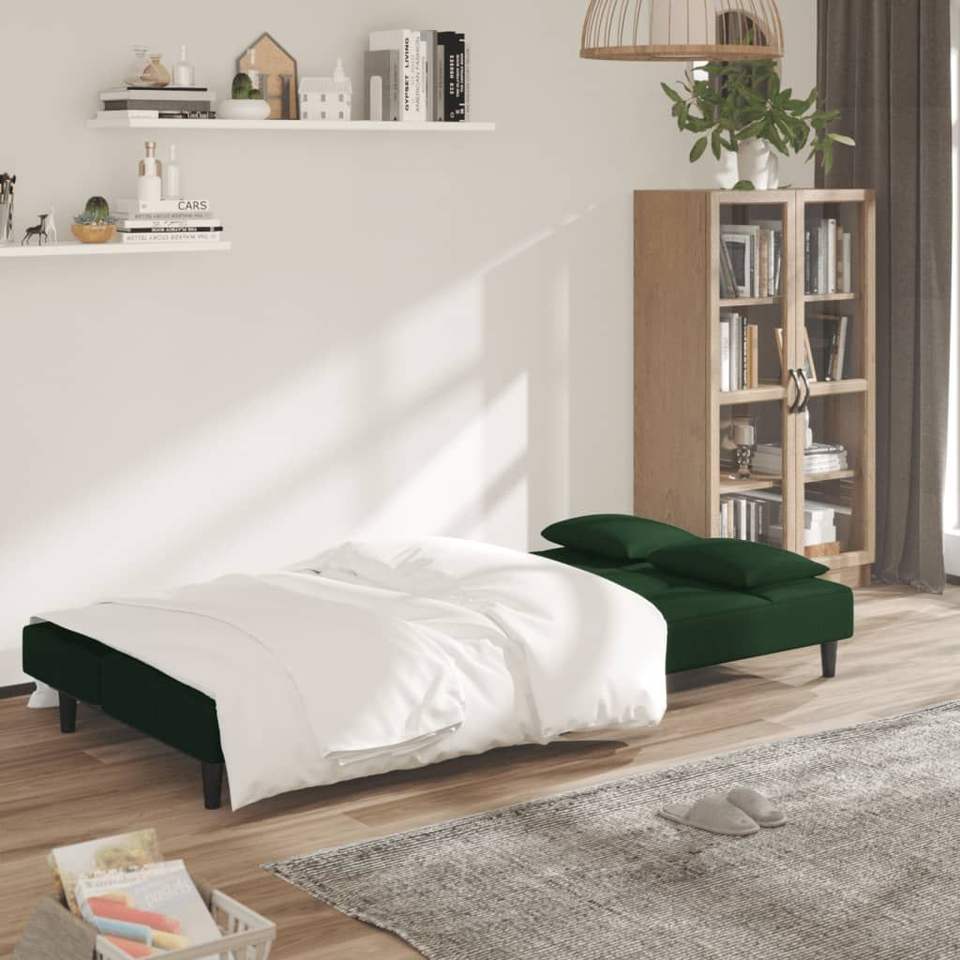 2-Seater Dark Green Velvet Wood Plastic Sofa Bed Foam with High Comfort