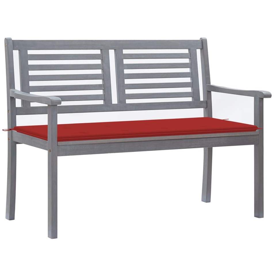 Panca da giardino in legno di eucalipto grigio a 2 posti con cuscino di 47.2 pollici di lunghezza