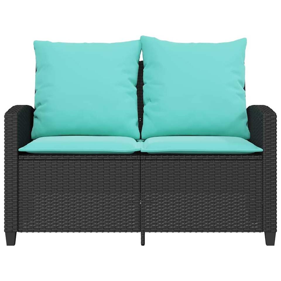2-Seater Patio Sofa Set Black Poly Rattan with Cushions and Table for Outdoor Living