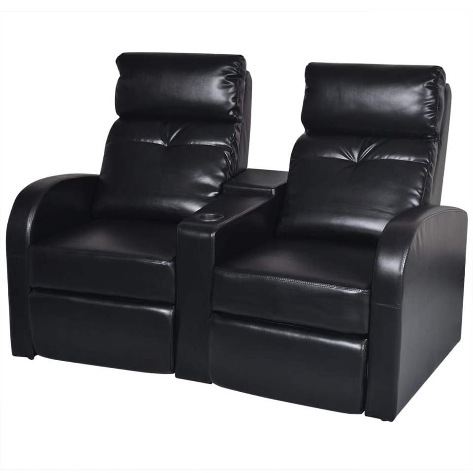 2-Seater Recliner Sofa in Black Artificial Leather with Wooden Frame