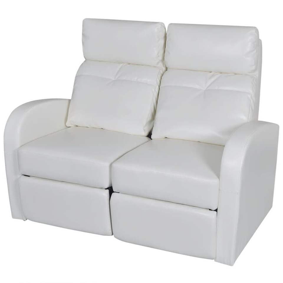 2-Seater White Faux Leather Home Theater Recliner Sofa