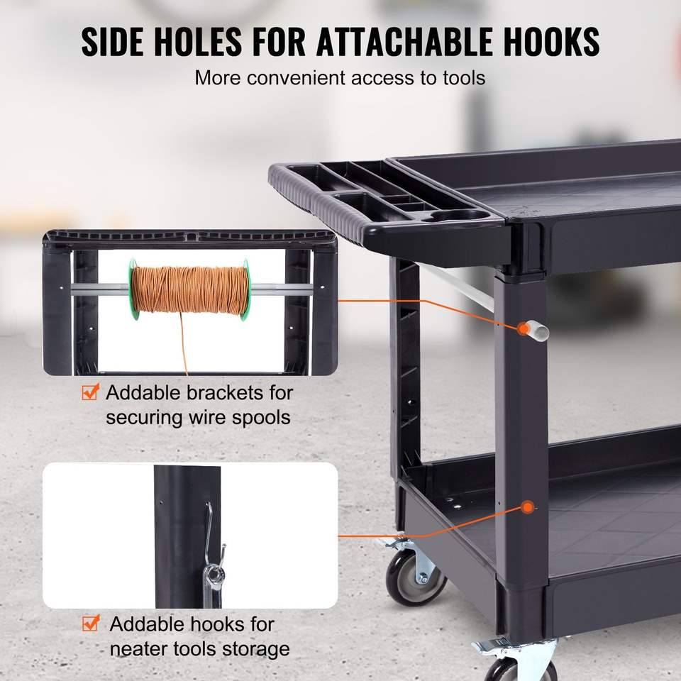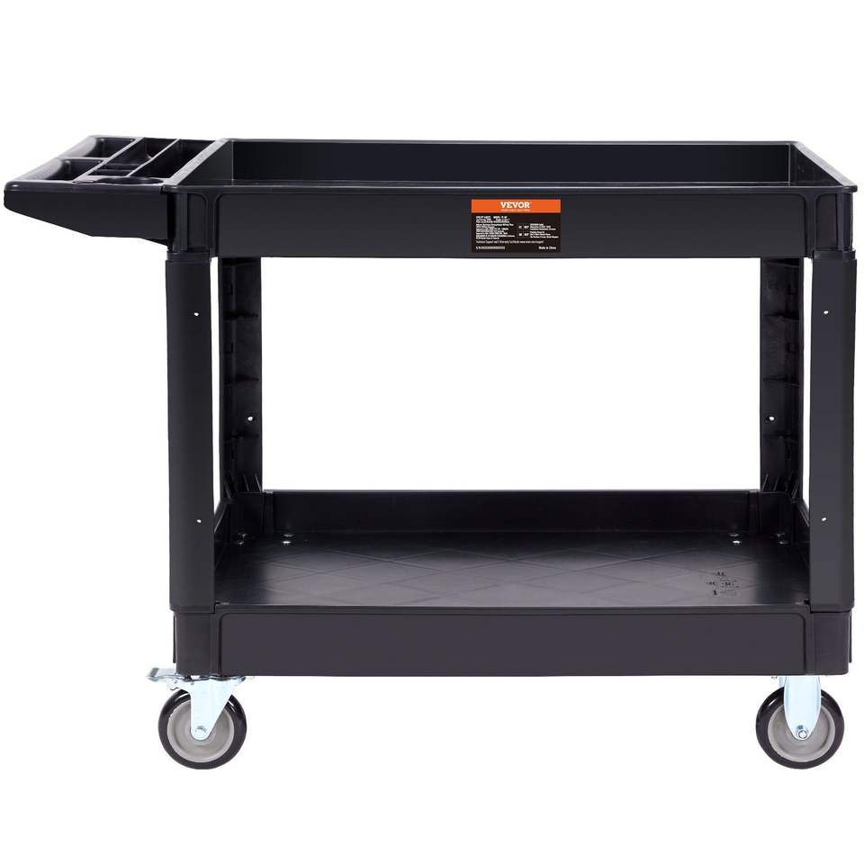 Carrello multiuso in plastica resistente a 2 ripiani da 550 libbre con ruote girevoli a 360° (2 freni)-La