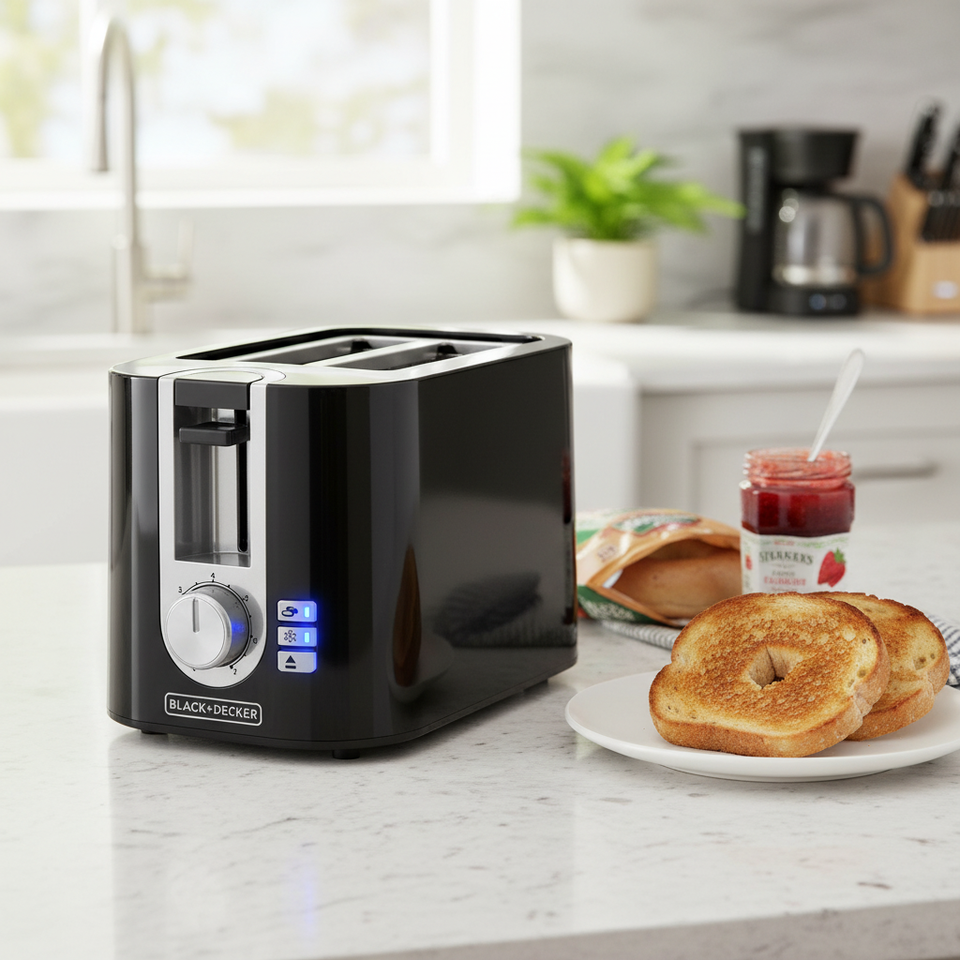 Tostapane Illuminato a 2 Fette con 7 Livelli di Cottura, Vassoio Raccogli Briciole Rimovibile, Funzione Bagel e Funzioni Congelare/Annullare