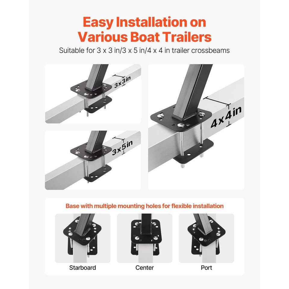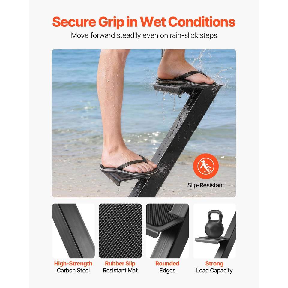 Scaletta a 2 Gradini in Acciaio al Carbonio Rinforzato per Rimorchio Barca con Maniglia Antiscivolo e 3 Opzioni di Angolo di Montaggio