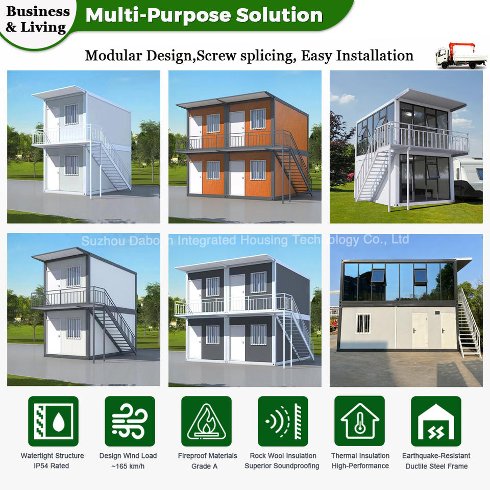 Casa Container a 2 Piani in Acciaio e Pannelli Sandwich con 2 Camere da Letto Design Moderno Origine Cina Dimensioni 20ft/40ft