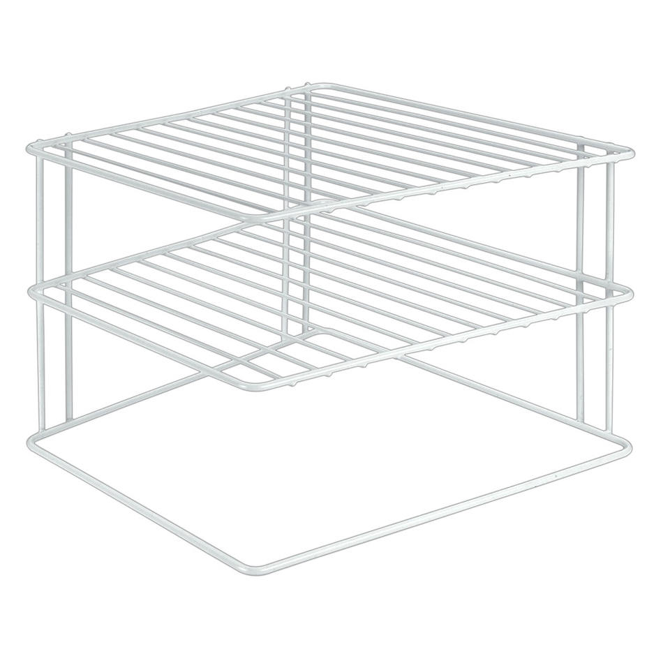 2-TIER CORNER SHELF SILOS IN WHITE IRON 25X25X19CM