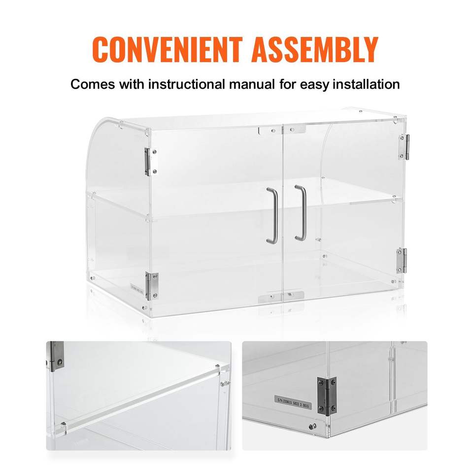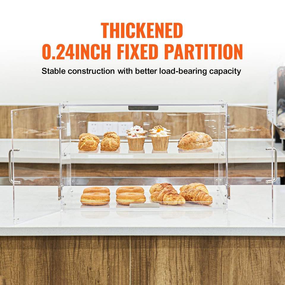2-Tier Commercial Countertop Bakery Showcase Acrylic Display Box Rear Door Access Removable Shelves for Fresh Donuts Cakes