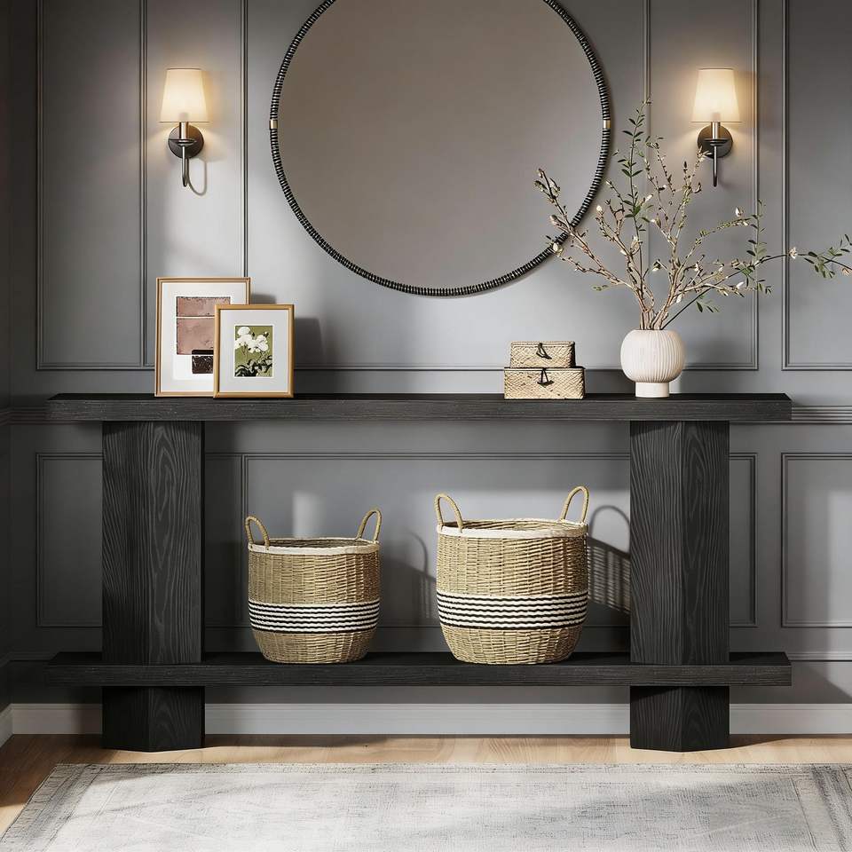 Consolle a 2 livelli per corridoio e utilizzo dietro il divano