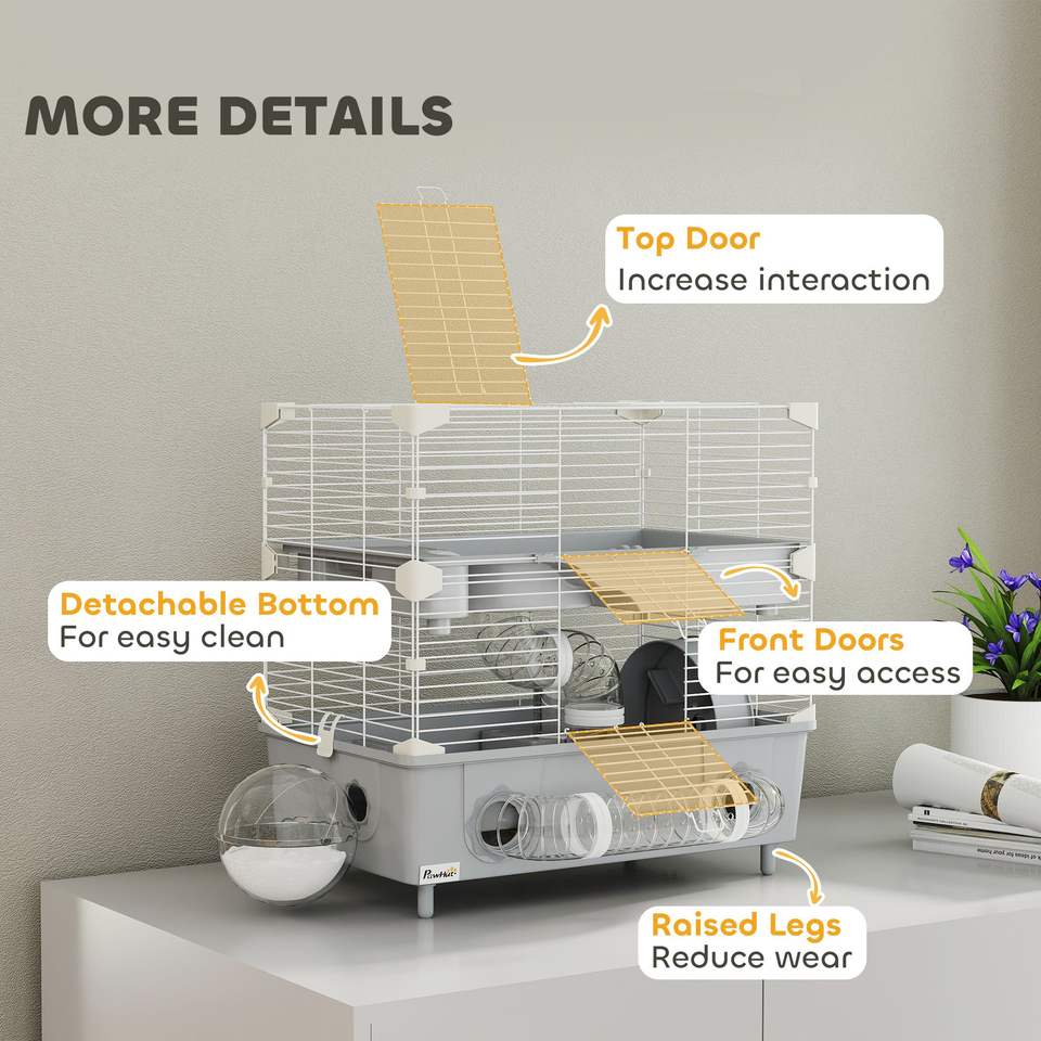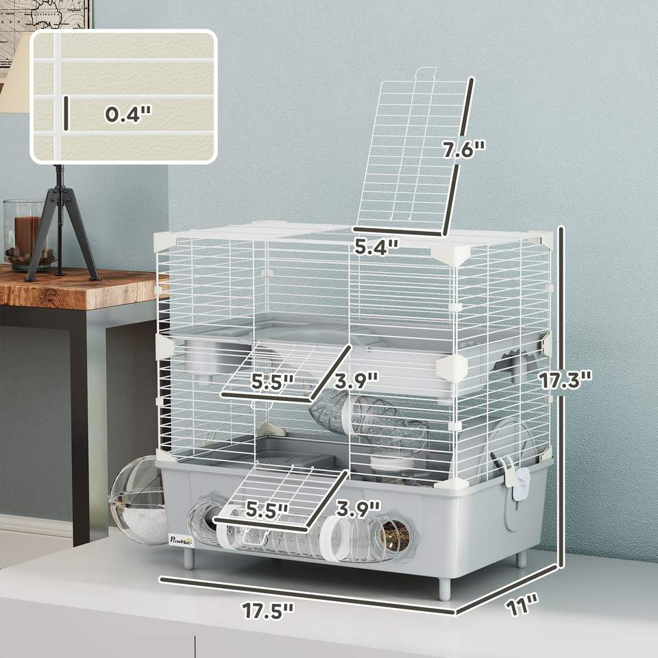 Gabbia a 2 livelli per criceti nani con bagno in sabbia, ruota per esercizio e tubi per borraccia per criceti grigi - Accessori di qualità per animali domestici