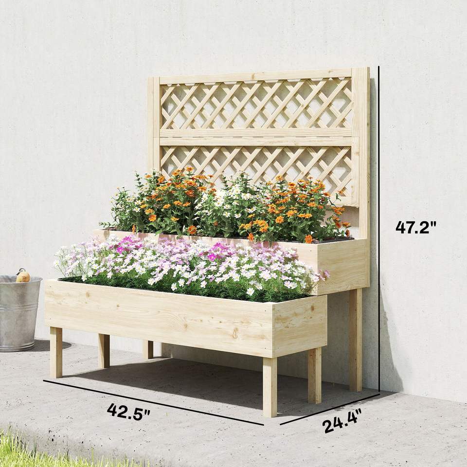 Fioriera Rialzata a 2 Livelli con Traliccio Naturale per Piante Rampicanti, Soluzione Perfetta per Recinzioni