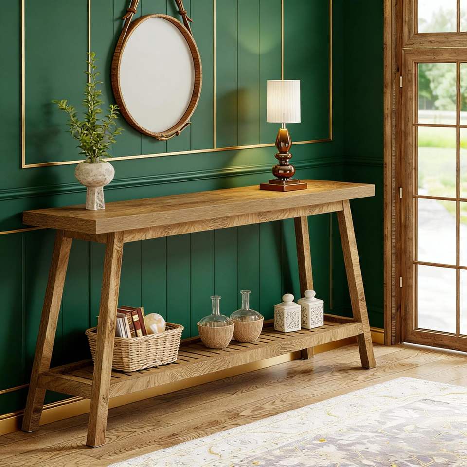 Consolle a 2 livelli in stile rustico per ingresso o divano - Tavoli consolle resistenti