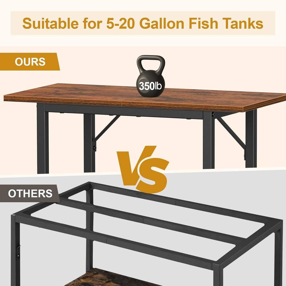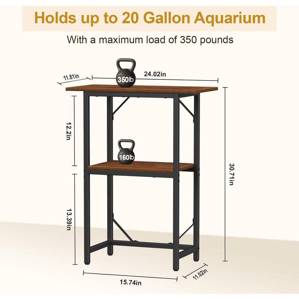 Supporto per Acquario a 2 Livelli per Vasche da 10-20 Galloni con Ripiani Portaoggetti per Acquari e Terrari da Casa e Ufficio