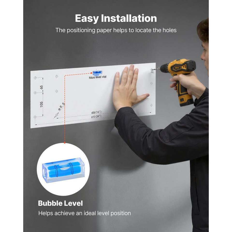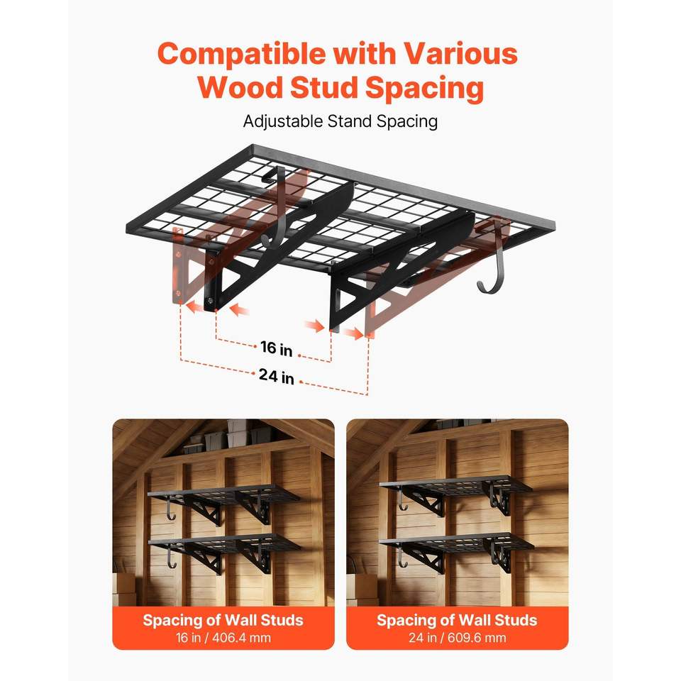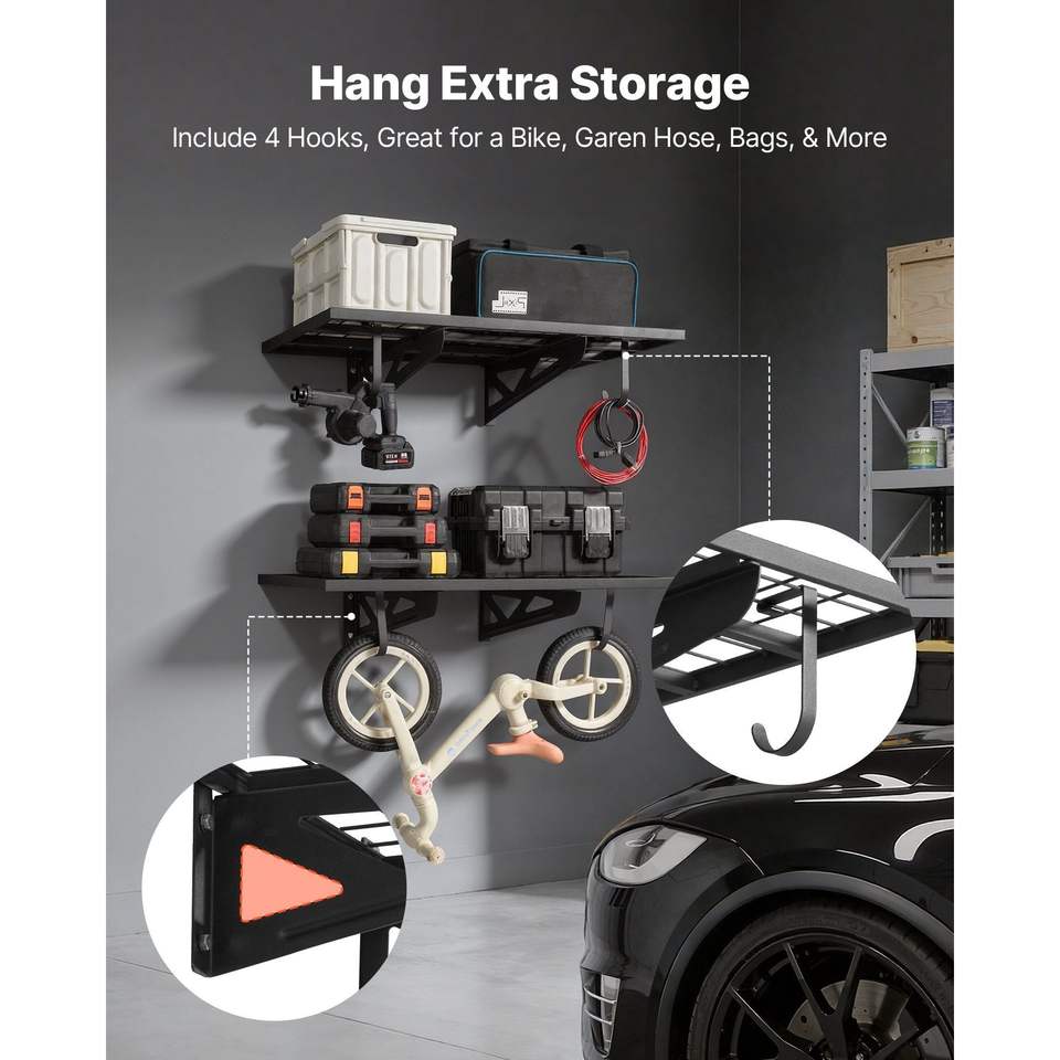 Scaffalatura a 2 livelli in acciaio resistente per garage, montaggio a parete, 2 x 3 piedi (24 x 36 pollici) per ripiano, sistema di stoccaggio flottante con ganci