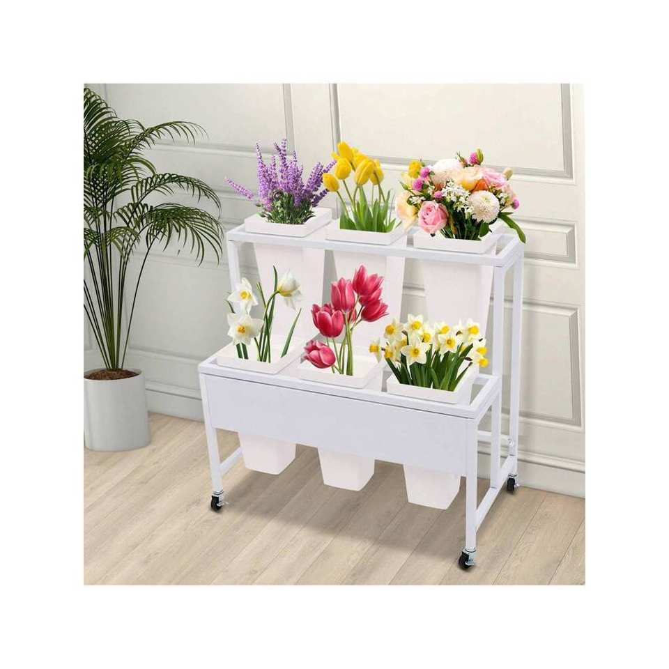 Espositore a fiori in metallo a 2 livelli supporto in ferro con 6 secchi per composizioni floreali