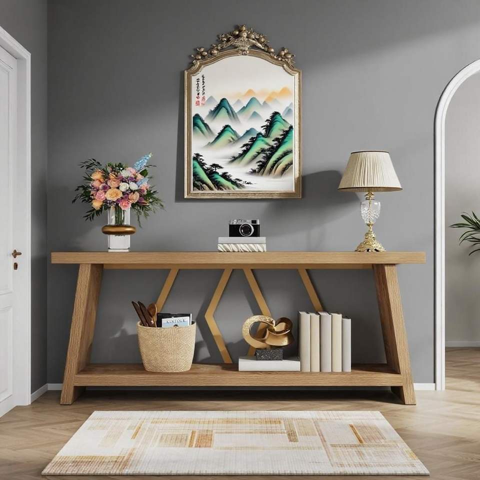 Consolle stretta a 2 livelli per soggiorno, elegante tavolino da divano
