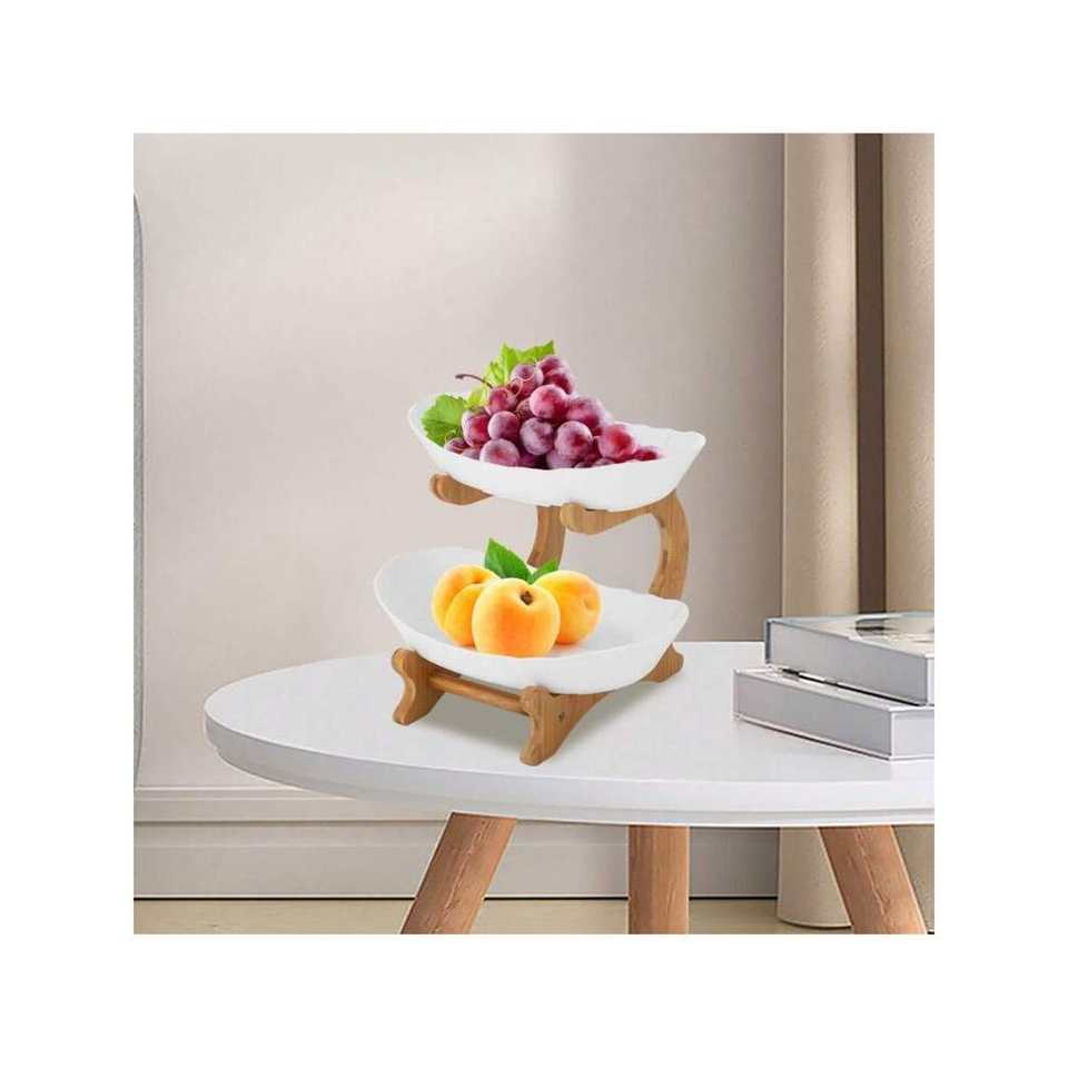 2-Tier Open Design Fruit Serving Tray 2-Layer Snack Bowl Multi-Function Organizer for Fruit Cookies Small Items for Table Top
