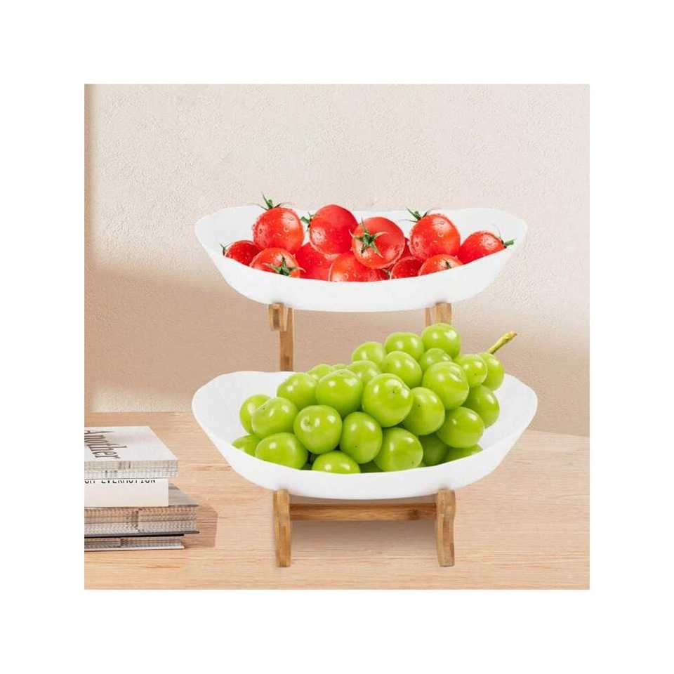 2-Tier Open Design Fruit Serving Tray 2-Layer Snack Bowl with Multi-Function Table Top Organizer for Fruit Cookies Small Items